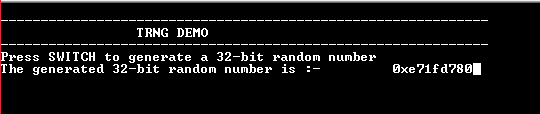This example application shows how to use the TRNG Peripheral library to generate and read a random number.